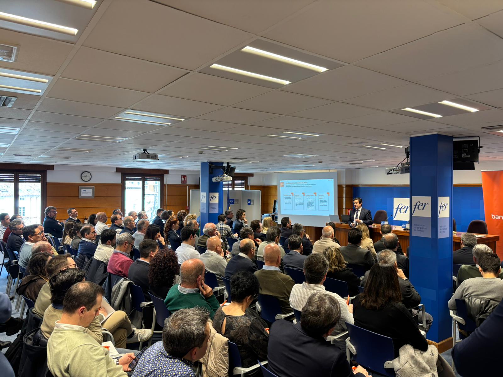 La sede de la FER acogió una jornada sobre geoestrategia, comercio internacional y herramientas para gestionar los riesgos en los mercados globales, organizada por la FER y Bankinter. Participaron casi un centenar de empresas