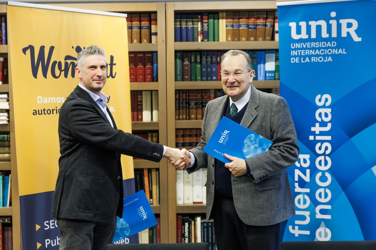 - El rector de UNIR, José María Vázquez García-Peñuela, y el director de The Wombat Company, Juan Martínez Nájera, han rubricado este martes la alianza.