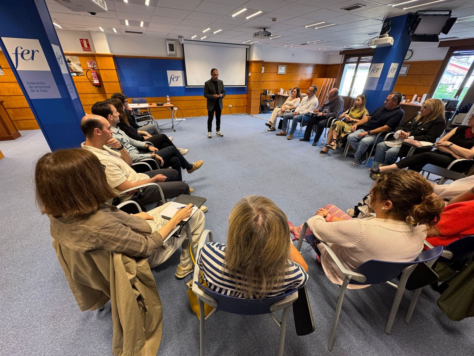 Ángel Martínez Maestre, colaborador de la FER, trabaja habitualmente como formador de directivos, realiza actuaciones de coaching en compañías y organizaciones y desarrolla actividades de formación sobre habilidades personales y liderazgo con métodos actorales. El ponente trasladó ayer a los participantes que “saber escuchar marca la diferencia”.